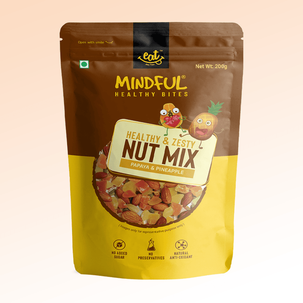 Papaya & Pineapple Trail Mix: A tropical delight filled with digestive enzymes, antioxidants, and mindful snacking Abu Dhabi fiber.